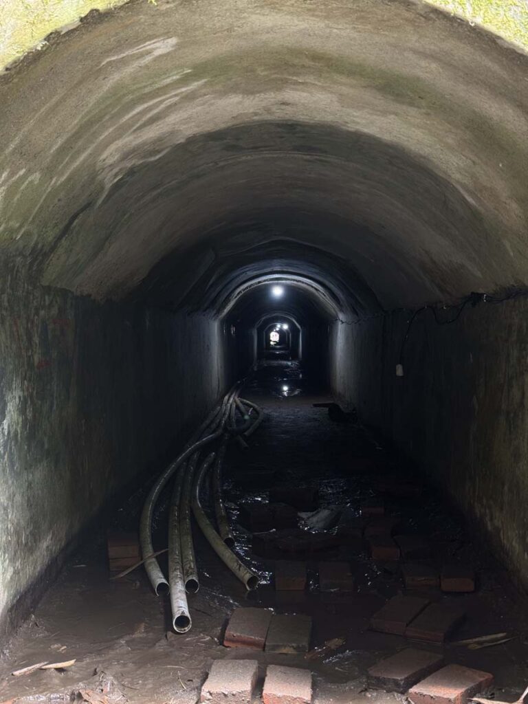 Un poco más adelante, dos nuevos carteles me presentaron otra decisión: «Ke Terowongan» (al túnel) y «Pintu masuk» (puerta de entrada) por un lado, y «Air tejun» (catarata) por el otro. Opté por explorar el túnel primero, un pasadizo bajo que me obligaba a ir agachado, pero con el final visible desde la entrada.